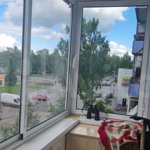 Балкон застеклен, раздвижные окна. Квартира очень тёплая. Есть дополнительная шумоизоляция