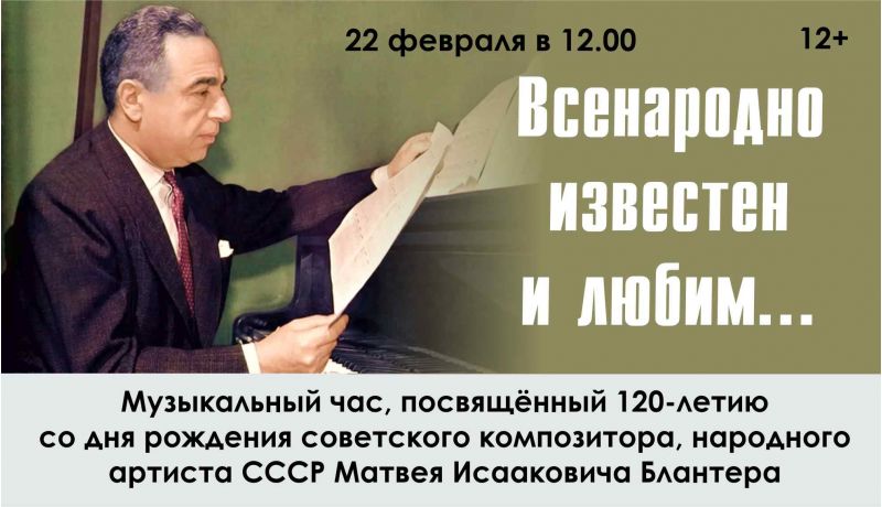 Анонс музыкального часа «Всенародно известен и любим…» к 120-летию Матвея Блантера