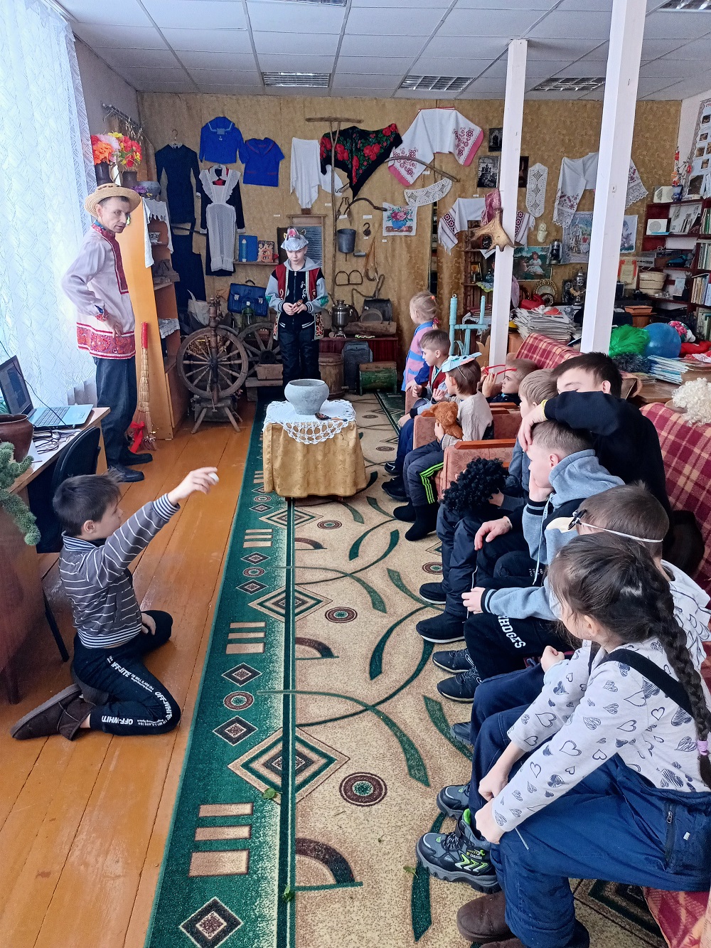Активное участие дети приняли в игре «Галушки». В чугунок деревянными ложками закидывали «галушки». В этой игре ребята показали свою меткость. Узнали, для чего раньше использовали чугунки.