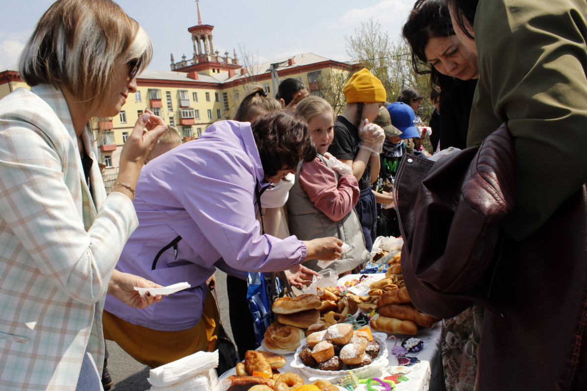 12 мая на территории прокопьевской школы №2 по инициативе педагогов, родителей и учащихся прошла благотворительная ярмарка, цель которой - сбор добровольных пожертвований на поддержку жителей г. Горловка.
