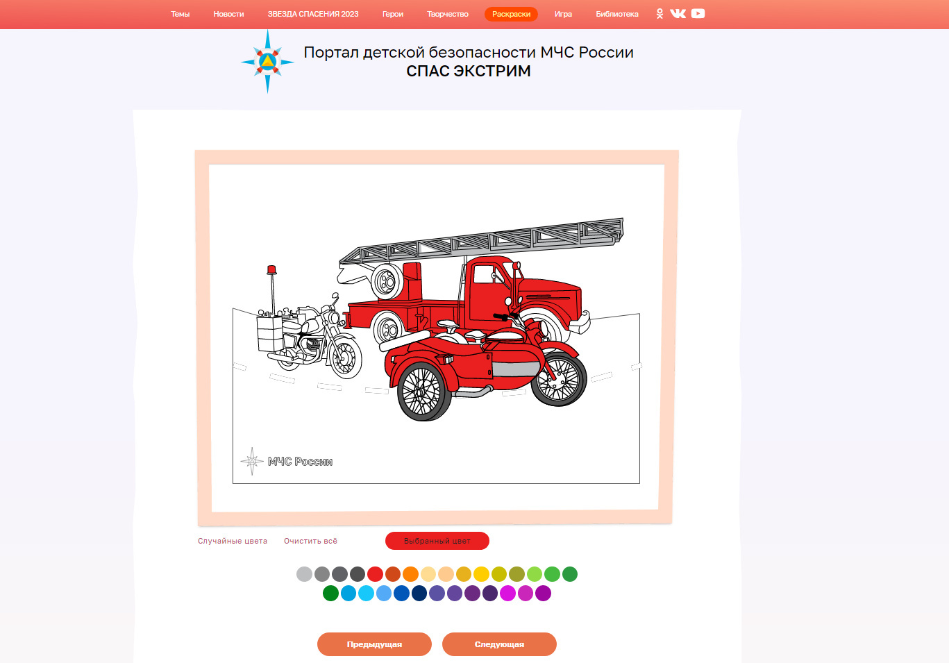 На портале детской безопасности МЧС России «Спас-Экстрим» появились интерактивные раскраски