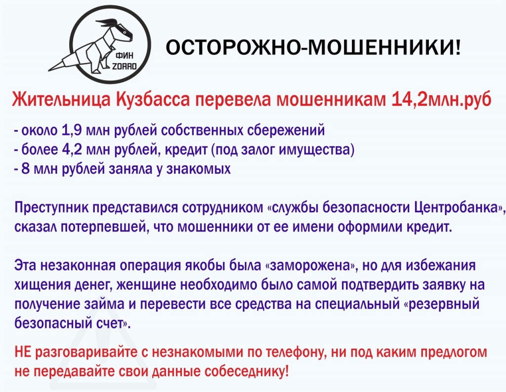 Осторожно мошенники!!! Жительница Кузбасса перевела мошенникам 14,2 млн.руб.
