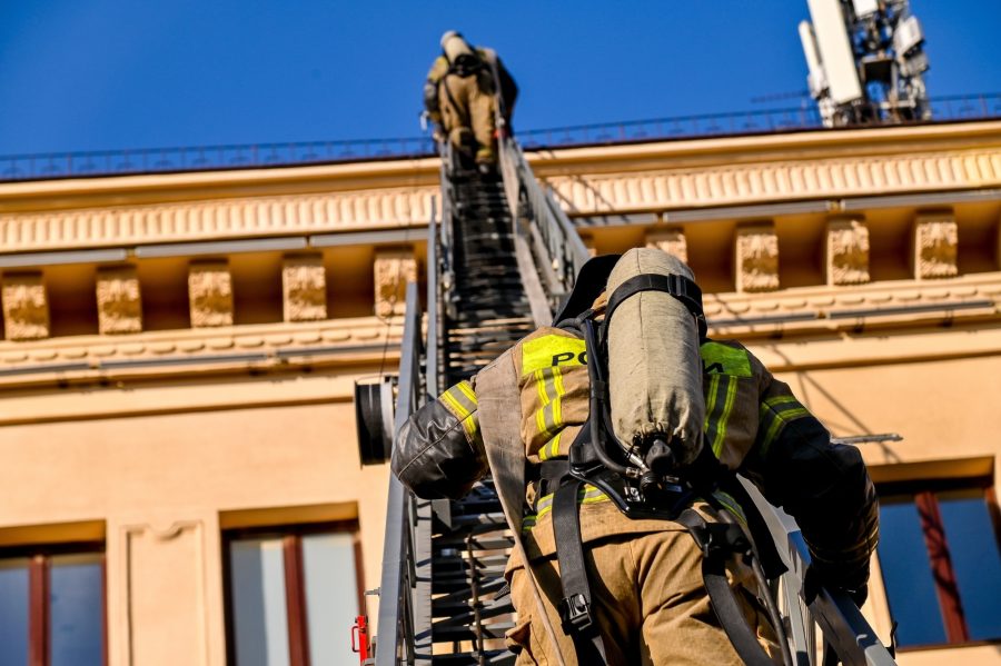 По замыслу учений, пожар начался на пятом этаже, в цехе подготовки декораций, который расположен за сценой. Условный огонь быстро распространился, возникло плотное задымление, резко выросла температура. Дежурные начали эвакуацию людей и одновременно сообщили о случившемся в экстренные службы.