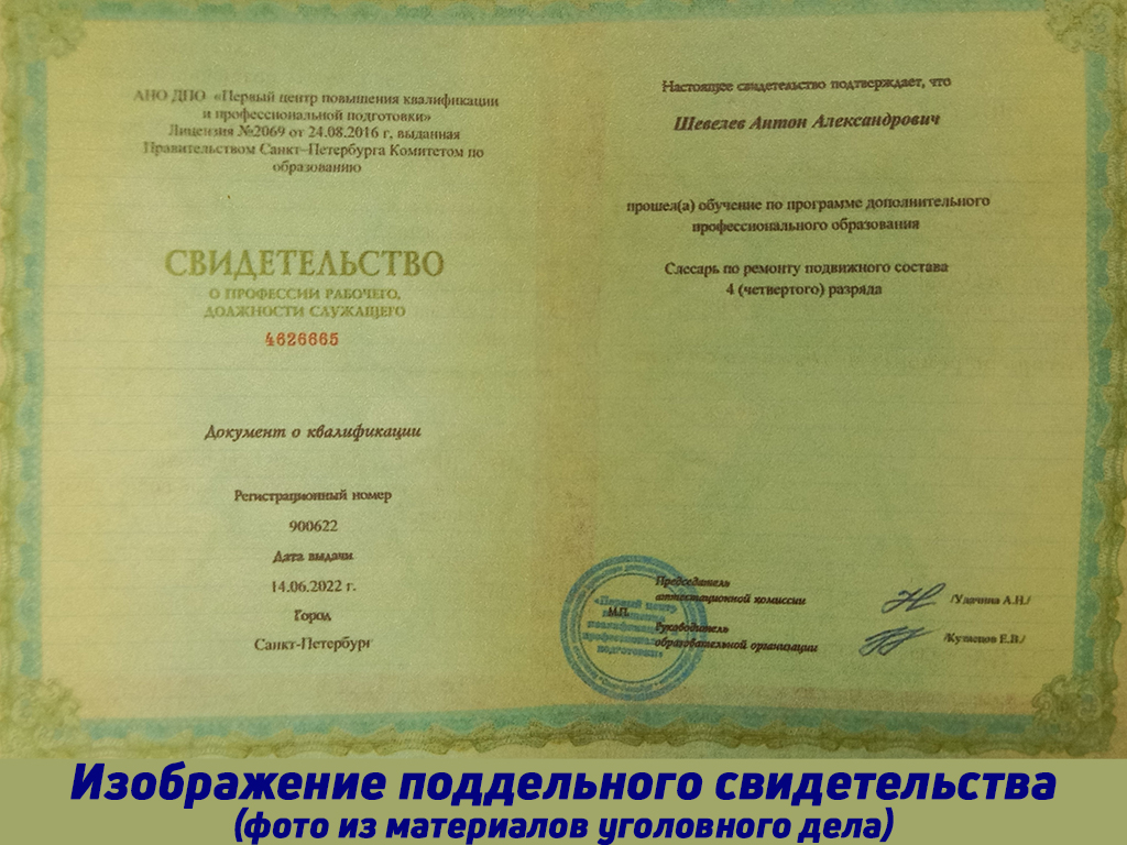 Поддельные документы, подтверждающие получение профессии слесаря по ремонту подвижного состава четвёртого разряда, 38-летний мариинец приобрёл за 12 тысяч рублей у неустановленного следствием лица,
