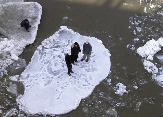 Рыбаки преодолели путь по замерзшему каналу и оказались на лимане, который также был затянут ледяной бронёй. Здесь группа и расположилась, чтобы порыбачить. Однако в течение дня вышло солнце, начало постепенно теплеть. И в конце концов лёд подтаял.