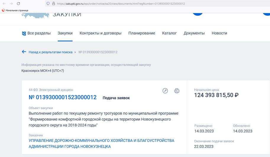 Начальная (максимальная) цена контракта составляет более 124 млн рублей.