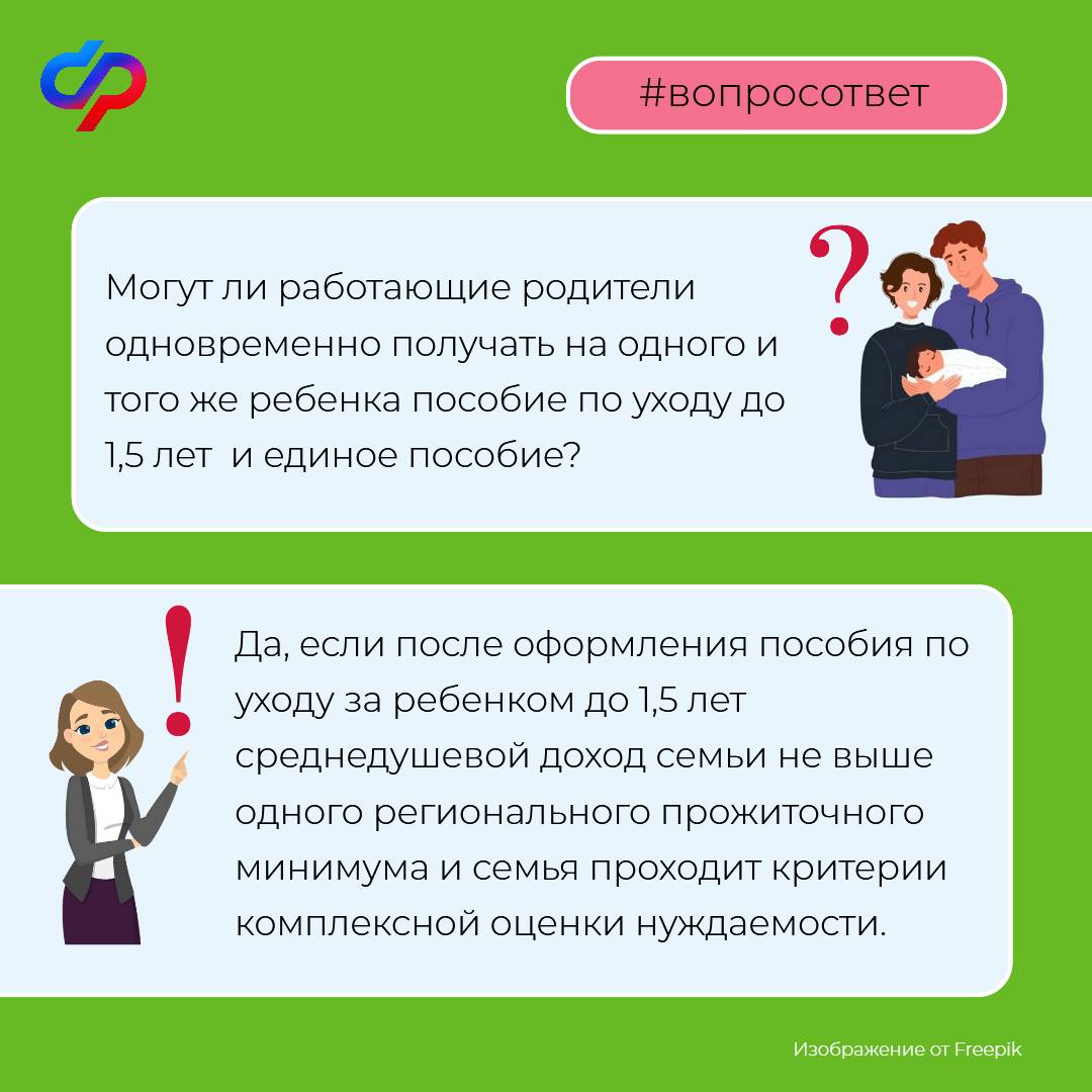 Могут ли работающие родители получать на одного и того же ребенка пособие по уходу до 1,5 лет и единое?